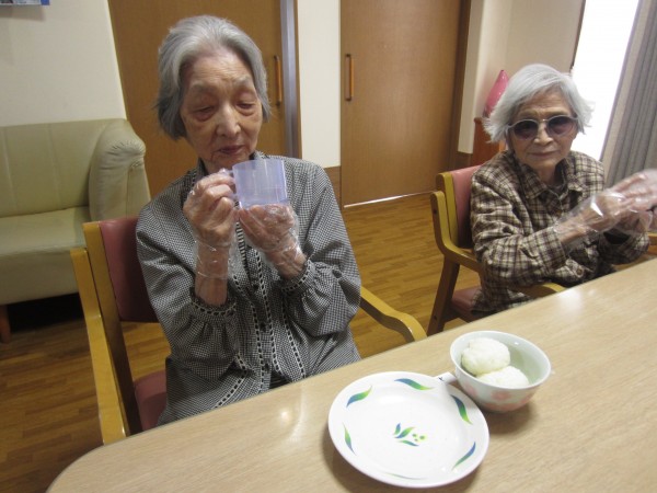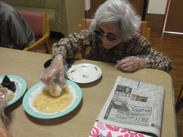 とても楽しまれ、「美味しいおはぎを作りましょう」とご利用者様同士で話し合いながら