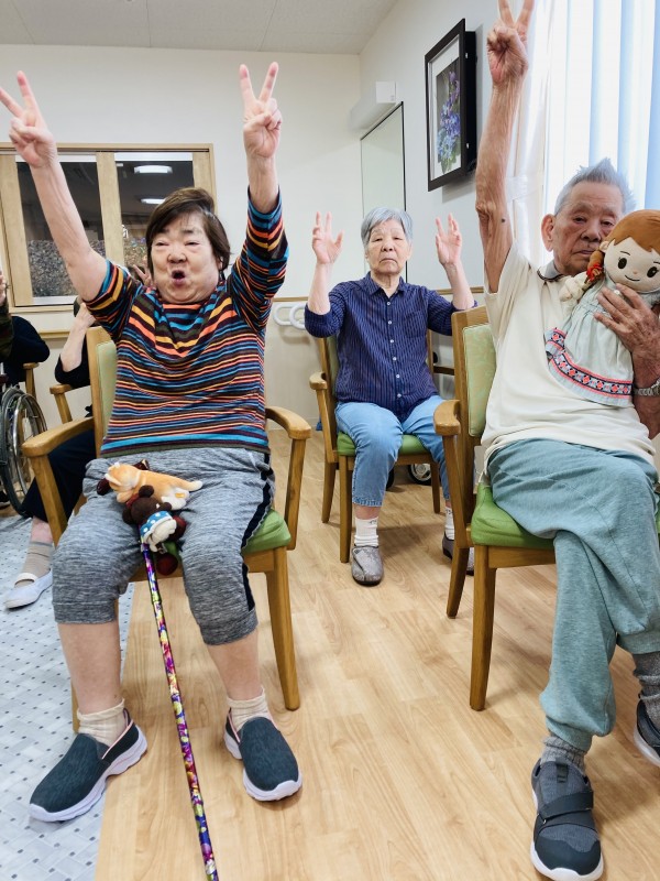 先生の掛け声に合わせて大きな口を開けてしっかり声を出したら、まずは皆さん一緒に手拍子を上下左右❗️