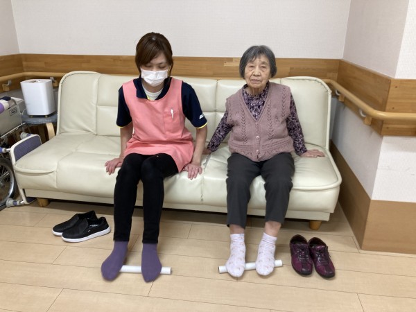 ラップの棒を活用して足のマッサージを行いました(^^)棒をコロコロ‼