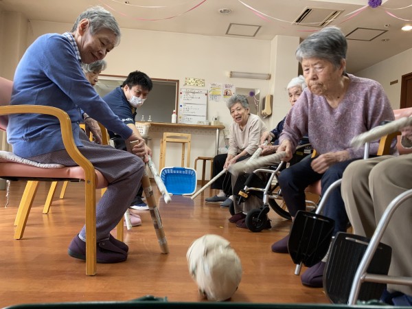 狙いを定めて、コロコロ~っと転がす利用者様と…