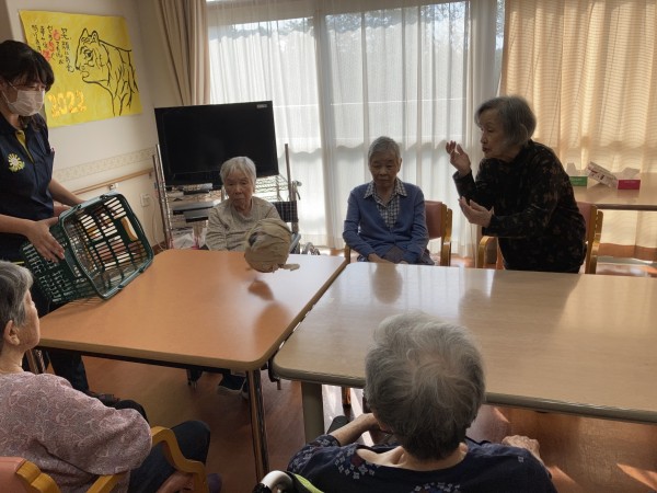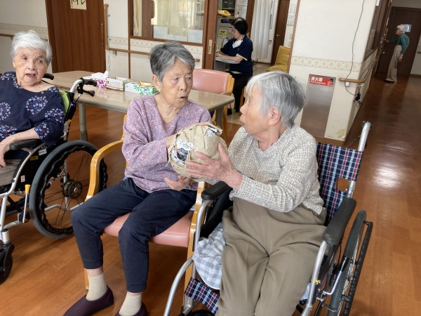 言葉が出てこない利用者様は隣の利用者様や職員が「コソコソ」っと教えてくれました。