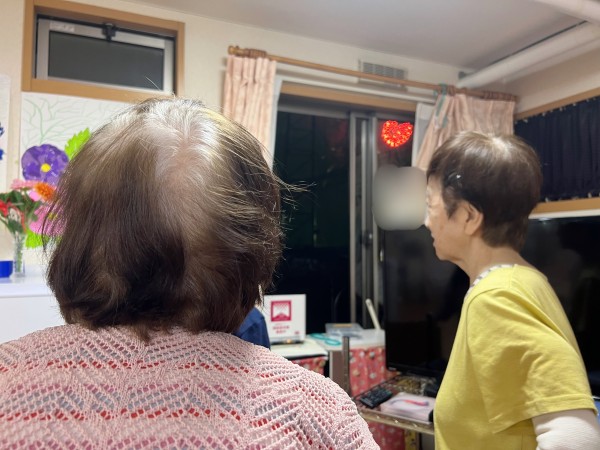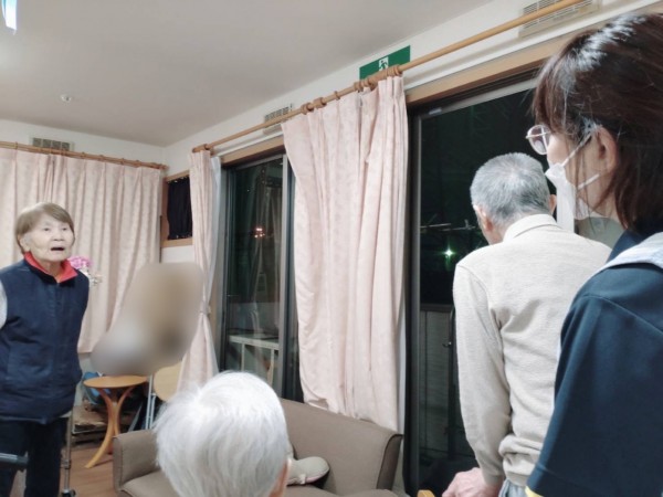 なんだなんだと夕食後お部屋に戻られていた利用者様はフロアへ。