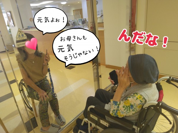 お二人の楽しい雰囲気に誘われて、客人の多いガラス越し面会。