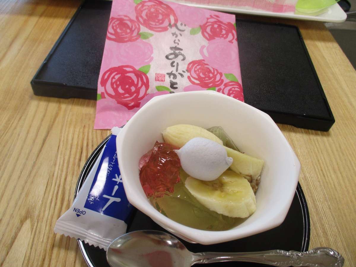 今日は母の日ということで手作りおやつを作り入居者様に召しあがっていただきました。