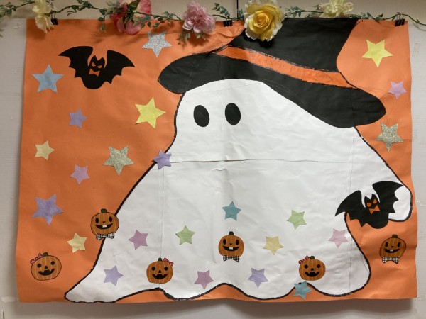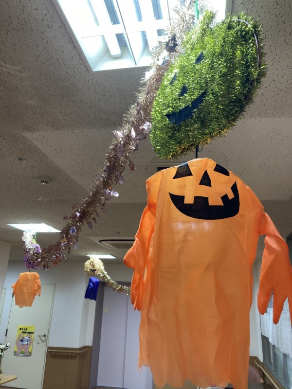 今月末はハロウィンなのでお化け飾りなどもあり、玄関先も