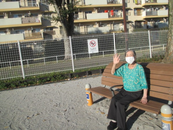 隣の公園でのーーんびりまったりした時間を過ごしてきました!(^^)!「落ち葉が落ちてきたわ。すっかい秋ね」と季節感を味わっていただきました。