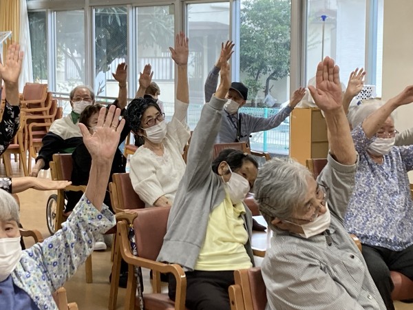 ご利用者様皆さん、手や足を動かしリモート運動教室にしっかり参加されていました。