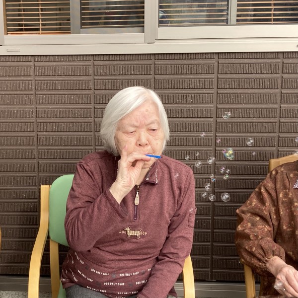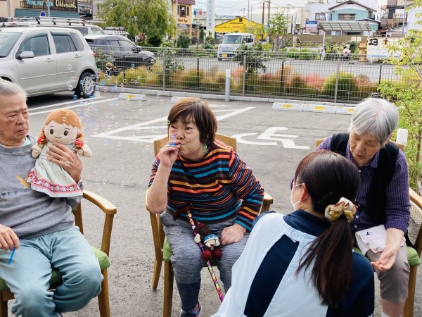 良い天気の午後、皆で外に集まってシャボン玉を楽しみました❗️