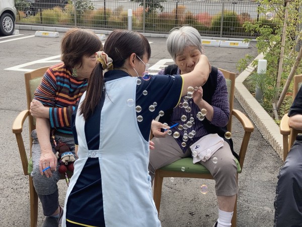始めは上手く出来なかったものの、皆さんコツをつかむとあっという間にたくさんのシャボン玉が空に飛んでいきます❗️