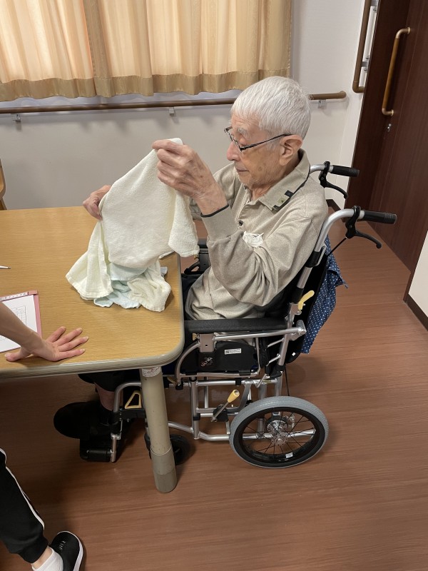 毎日、洋服やタオルなど洗濯していますが、洗濯物畳みを入居者様にお願いしています。