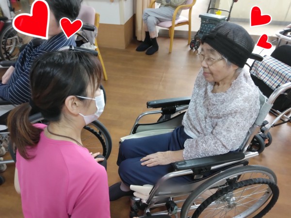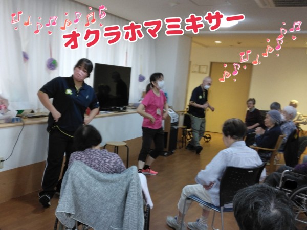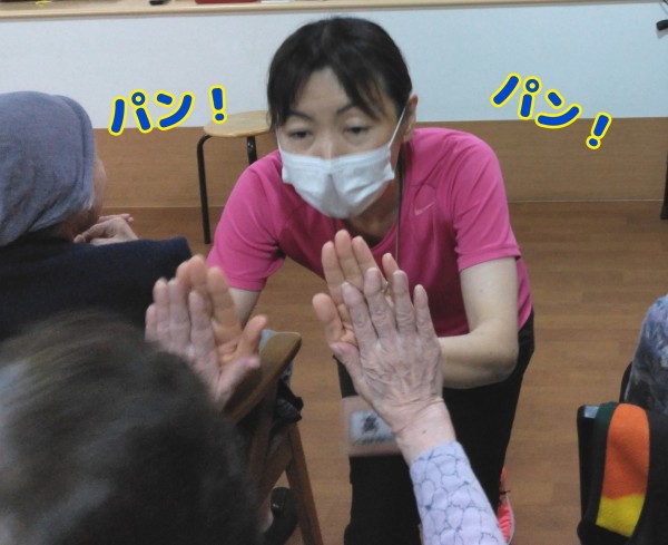 オリジナルの振り付けでは、職員とご入居者様がパン!パン!と