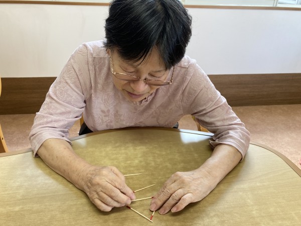 本日、皆さんに爪楊枝を使ってパズルをしてもらいました。