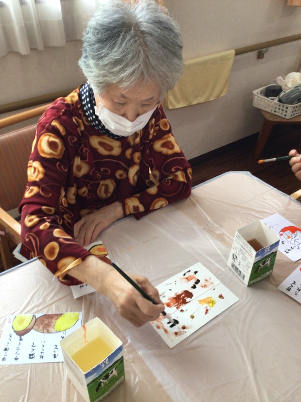 今回は絵具を使用して絵手紙をみなさんと制作しました♪