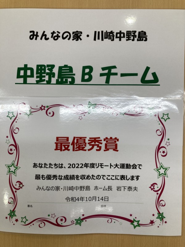 【みんなの家・川崎中野島】ALSOK介護で作るスポーツの秋~中野島だけの「表彰式」