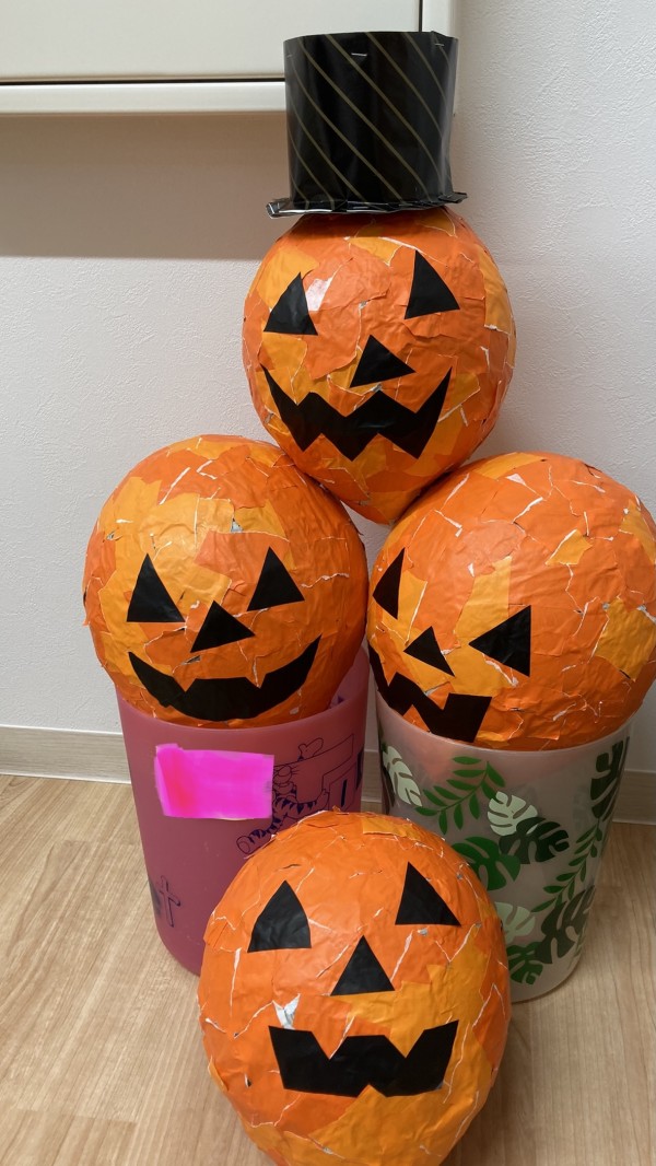 皆さん一緒に少しずつ作っていたジャックオランタン(カボチャのお化け)がいよいよ完成です❗️