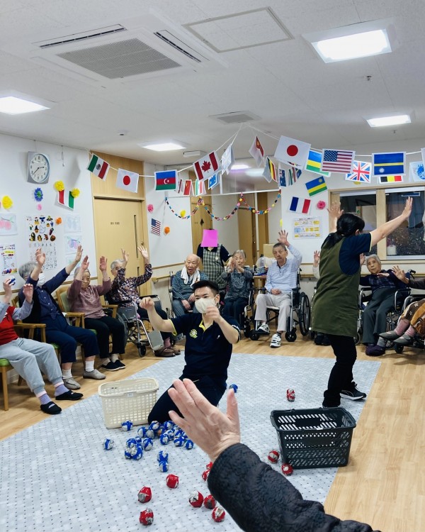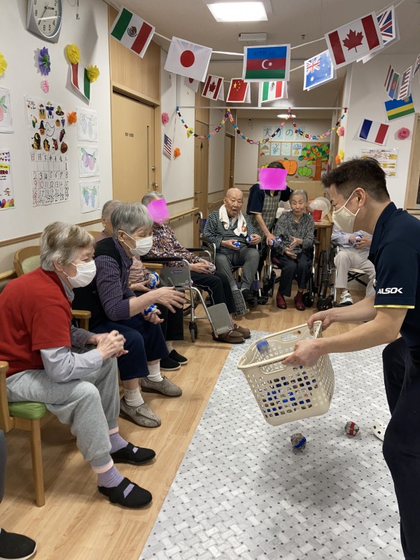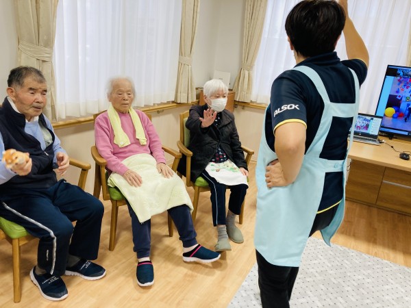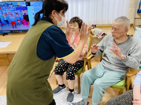 最後に皆さんでフォークダンス「オクラホマミキサー」を踊りました♪手拍子をしたり職員とハイタッチをして楽しみました❗️