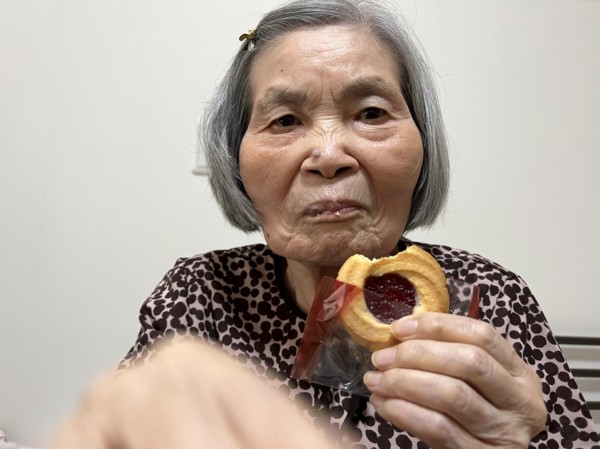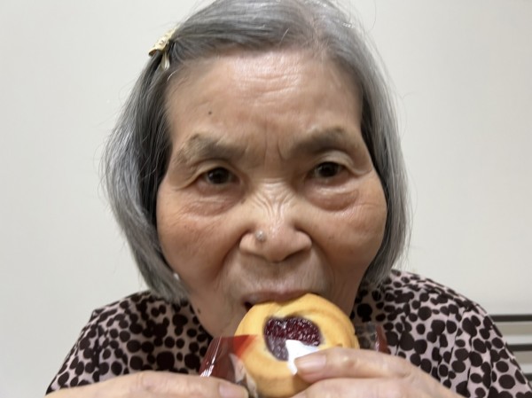 ご家族様からの差し入れを嬉しそうに頬張る。