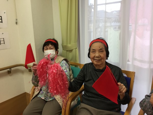 途中で旗とボンボンを持ち、応援合戦もしました~!!