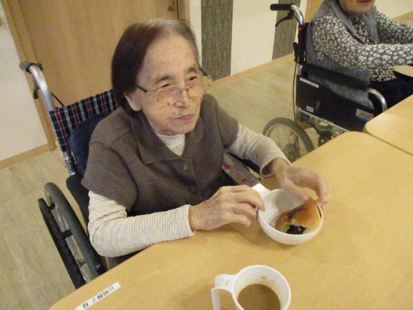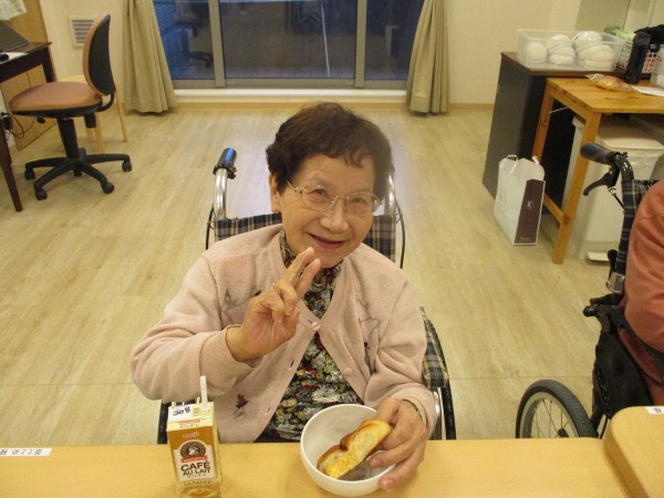 今日は寒いので温かな飲み物・パンでおやつタイムみなさん笑顔で食べていました(*^^*)