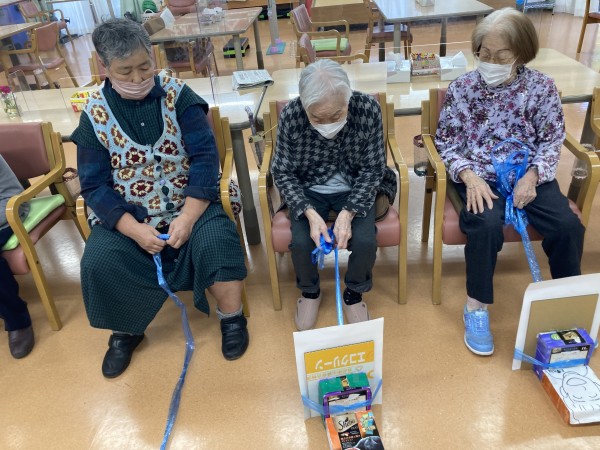 ということで、主に運動会に参加できなかった方向けのレクリエーションでした。「引っ張り」動作だったので、そこまで難しく考えないで出来ましたね!?