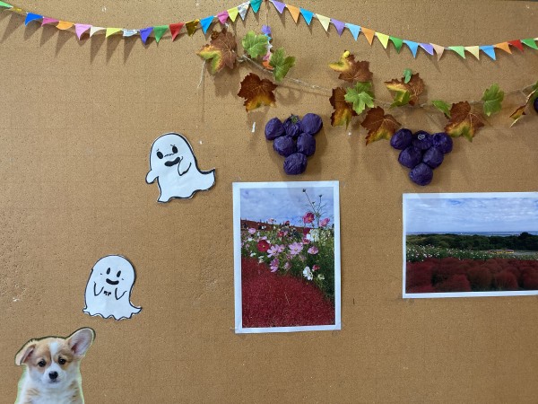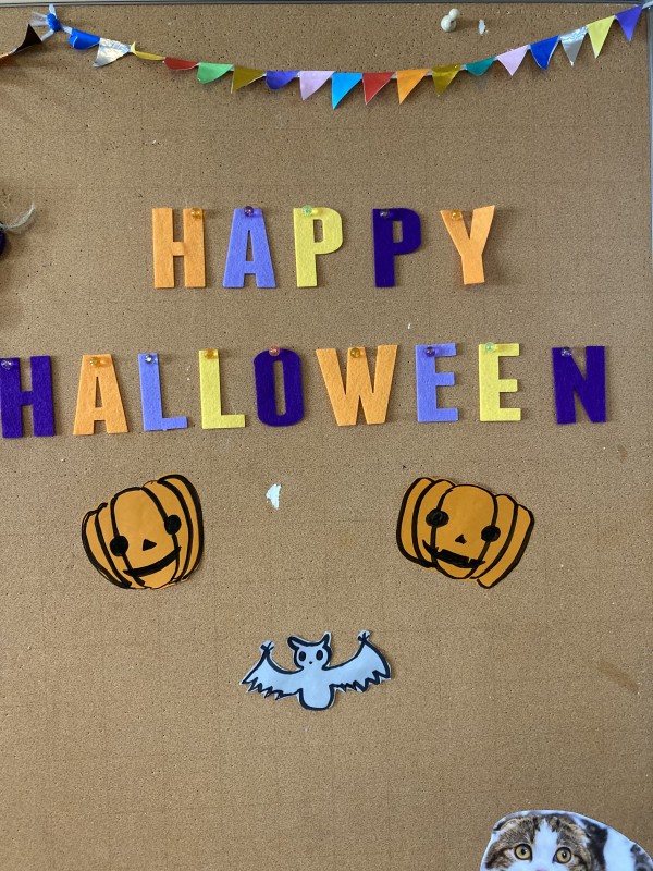 変化していく掲示板に、「可愛いわね~」「お菓子をくれないと…え~と何だっけ?」と話も弾みます♪
