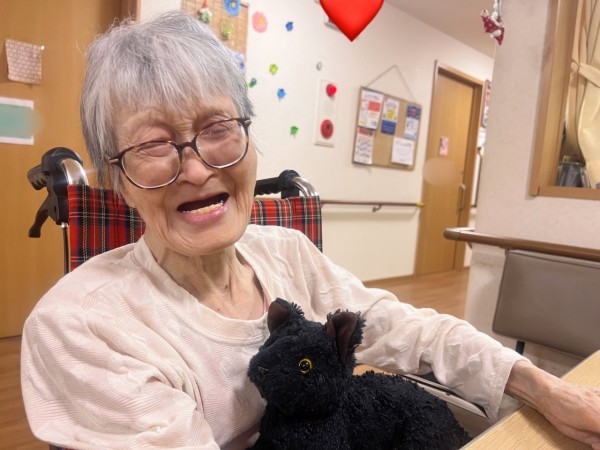 と笑顔で猫のお話をケアスタッフにして下さり、最後には満面の笑顔を見せてくださいました。