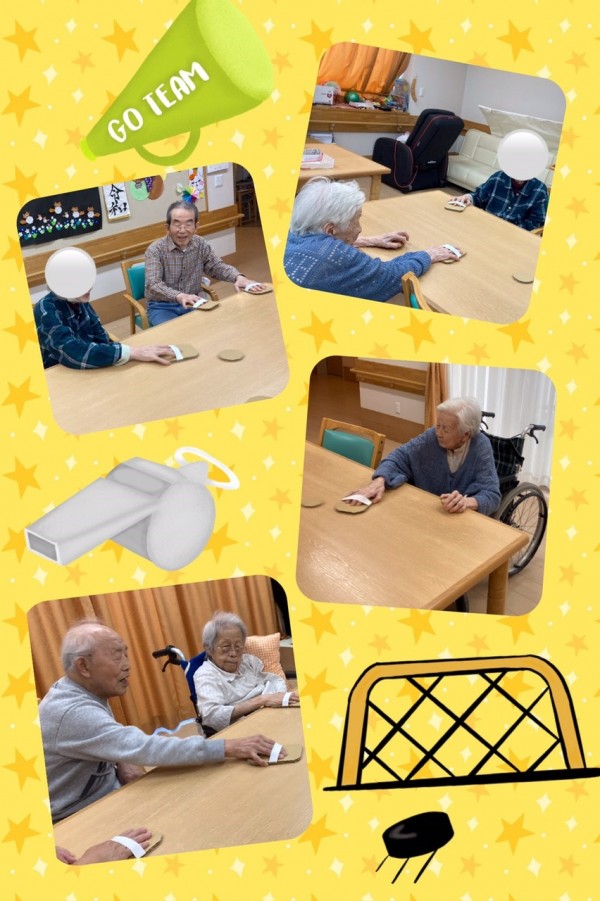 座りながらも遊べるホッケーに盛り上がっておられました☆