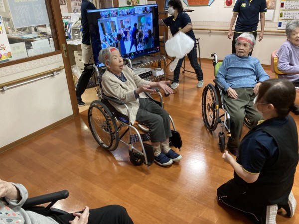 風船を落とさないように…なのですが…なぜか必死に「アタック!」している利用者様もいらっしゃいました。