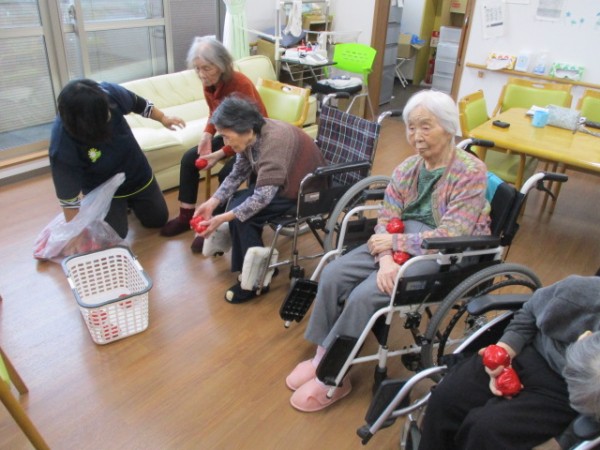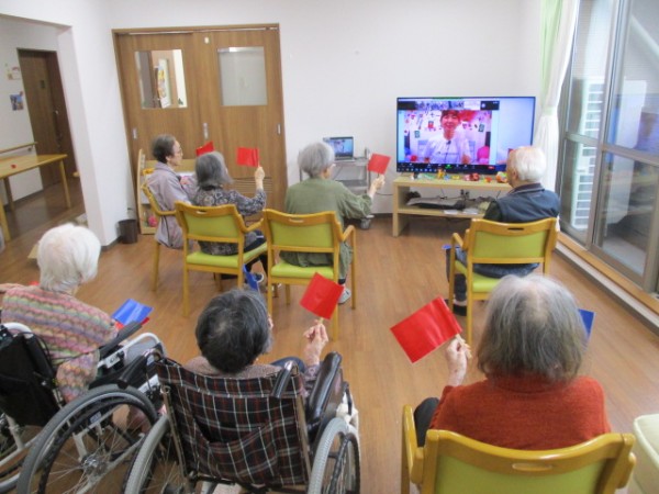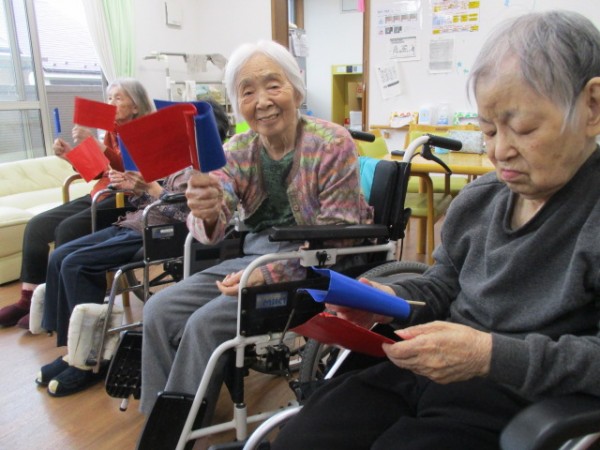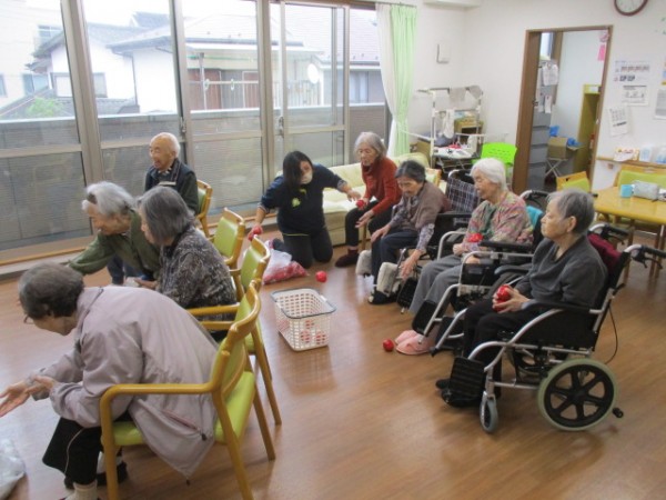 赤青旗揚げ・玉入れ・輪投げ・風船飛ばしを行いました!!