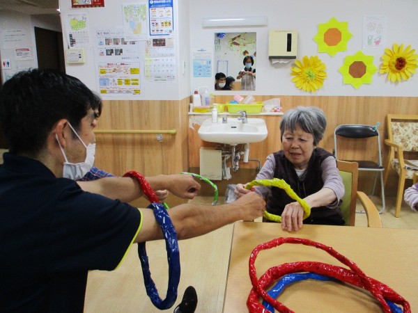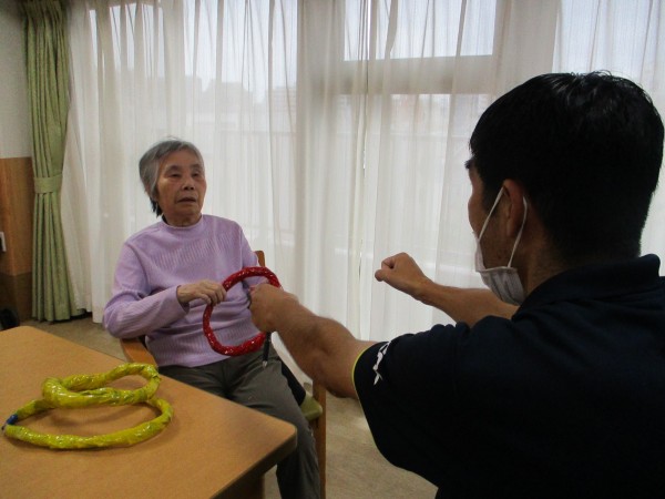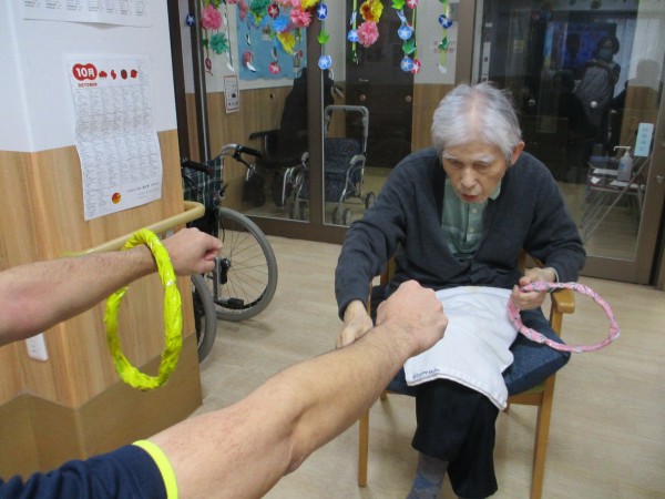 第1種目は輪投げです!職員の手足をめがけてポーーイ!!!