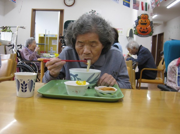 かき揚げうどん・いなりずし・南瓜サラダです。