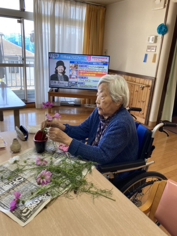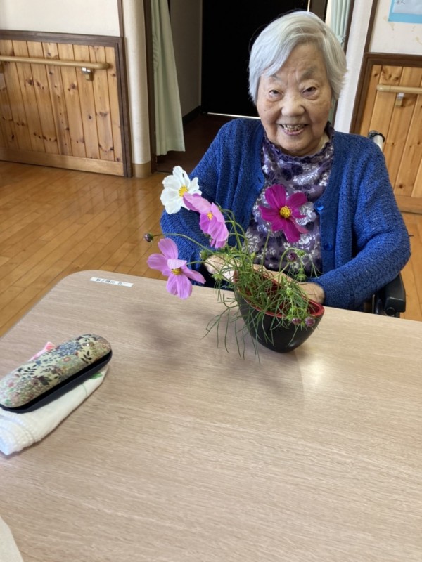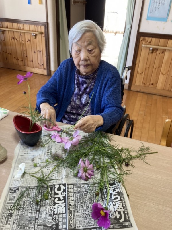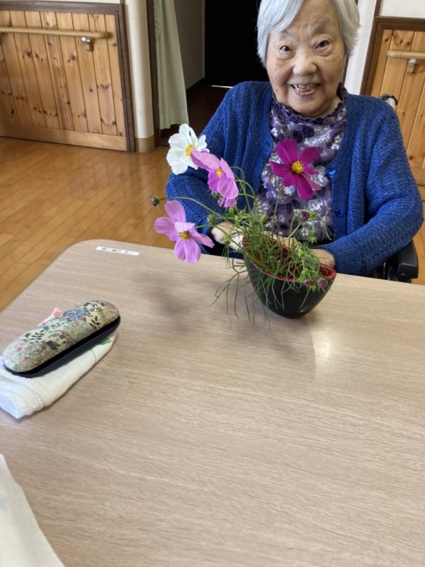 先日、職員がコスモスを持ってきてくださり、それを活けるお手伝いをお願いさせていただきました!