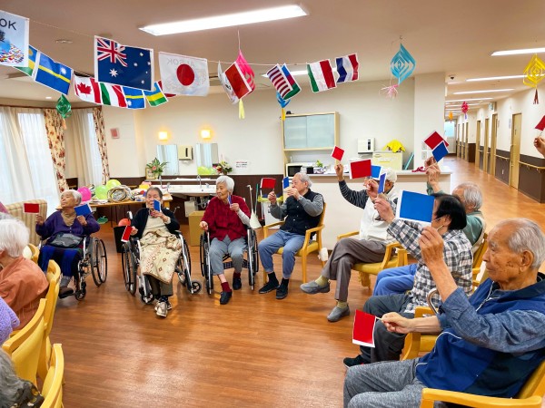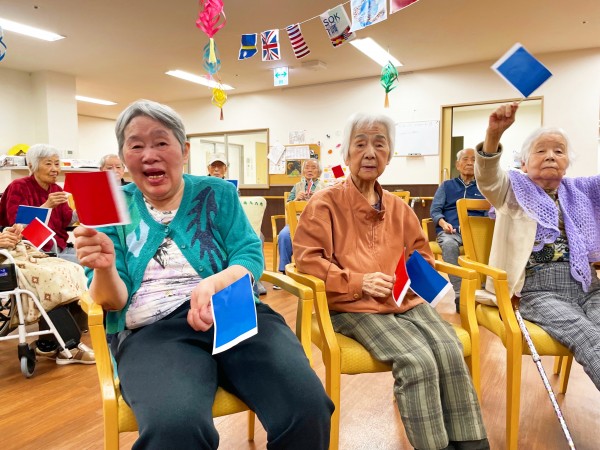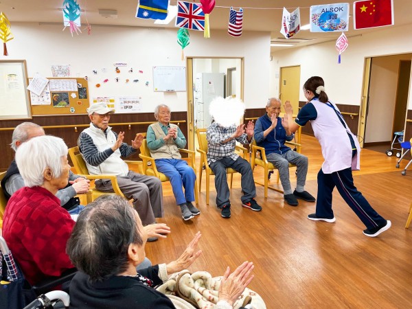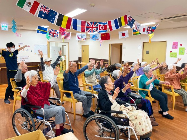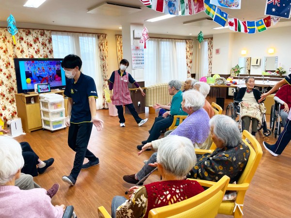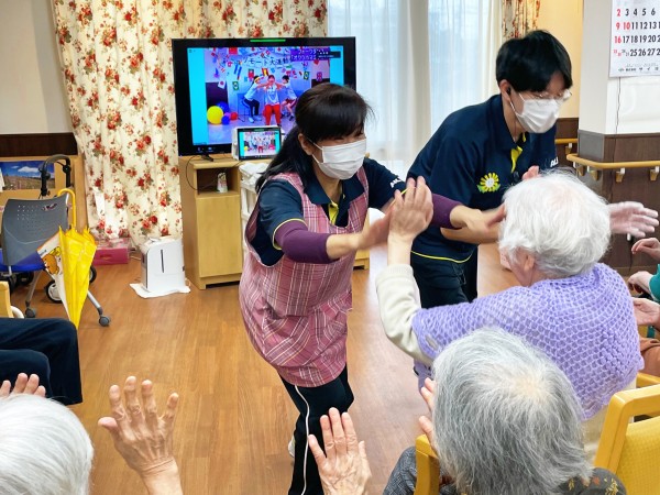 一人で行う振りの後、職員が順番にご利用者様の前に行き