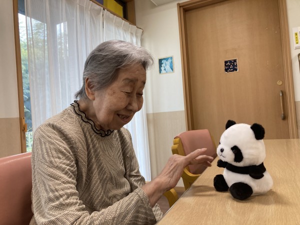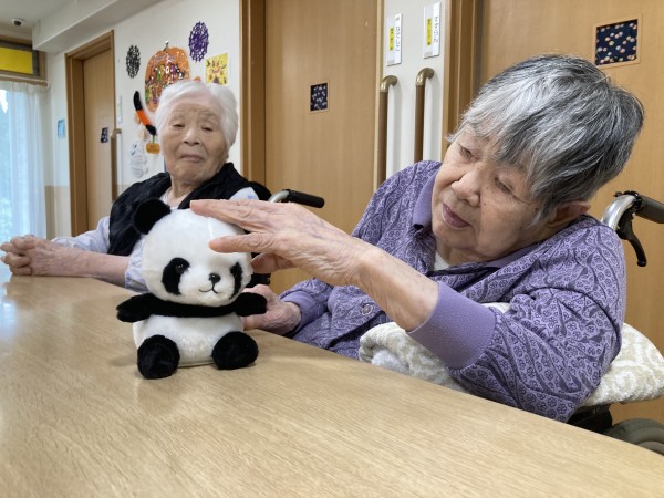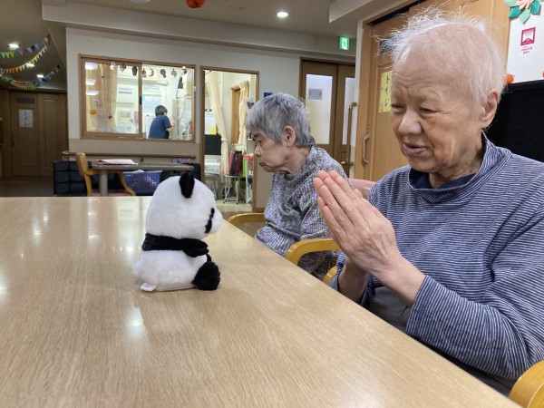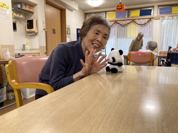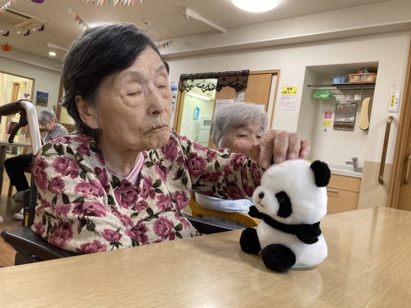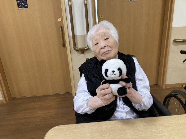 こんにちは(*^-^*) グループホームみんなの家・横浜羽沢です。 今日、当施設に可愛いぬいぐるみの ”ものまねパンダ”くん