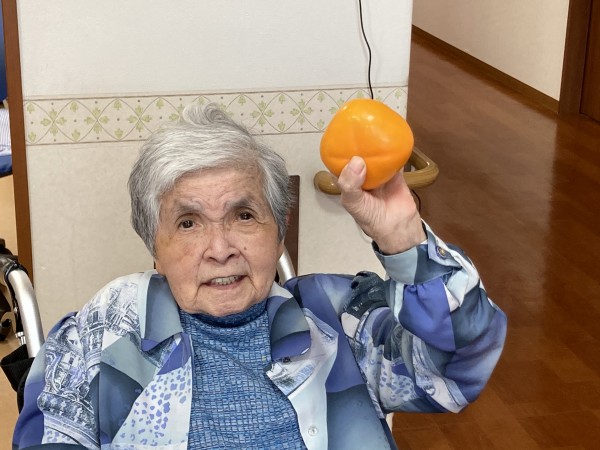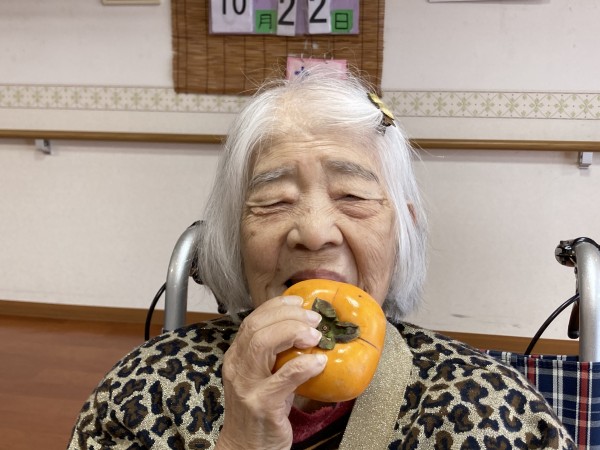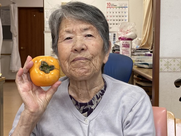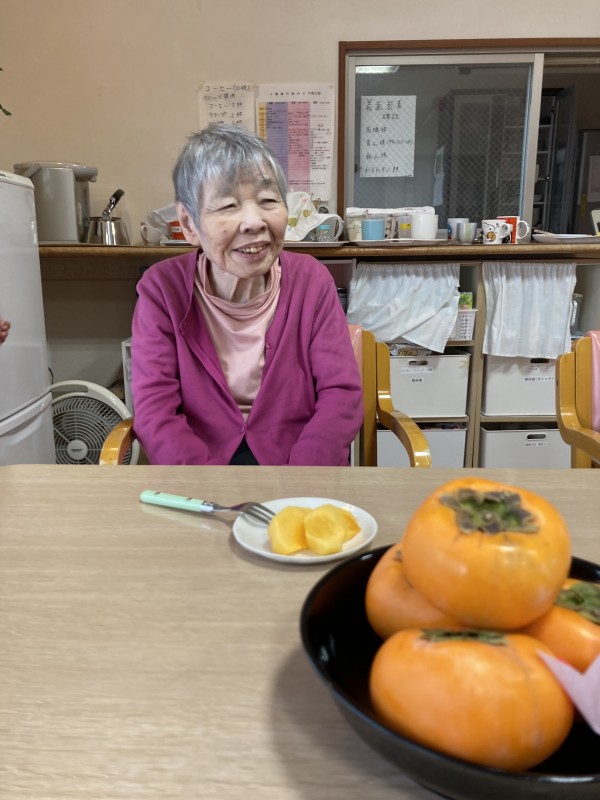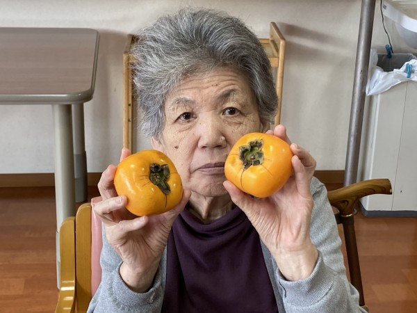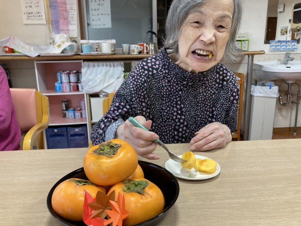 「うわぁ!甘そう」「昔干し柿作ったのよ!畑の周りにシブ植えてたから。途中で食べたくなっちゃうのよね…」