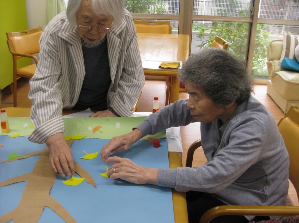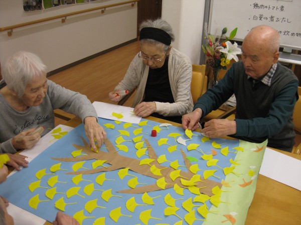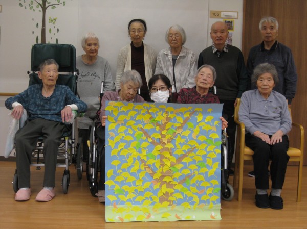 すっかり季節も秋になり、今月の貼り絵はいちょうです!!
