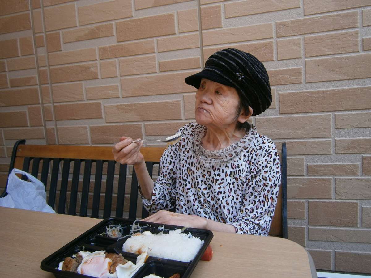 召し上がられた後も、「お夕食の分まで食べちゃったわ~」と笑っておられました。いつもと違う雰囲気の中での皆で食べる食事も又、嬉しいばかりでした。外の風やにおいもさらに美味しさにスパイスを加えてくれました。