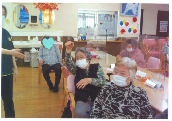 前に出た人に、ゼスチャーで正解を当ててもらうゲームです。お題は色々、皆様に楽しんでもらえるように司会が盛り上げます。ヒントを考えたり、体を動かしたり、そのヒントから正解を導き出そうと考える。双方が楽しいゲームです。今回も非常に盛り上がっていましたが職員も楽しすぎて写真を撮るのを忘れてしまったようで・・・。開始直後の写真しかないのがとても残念です(笑)