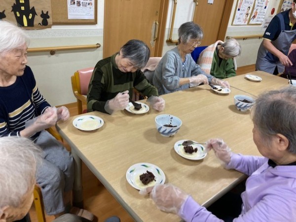 今月のおやつレクは皆様と一緒に、どら焼きづくりにチャレンジしました!