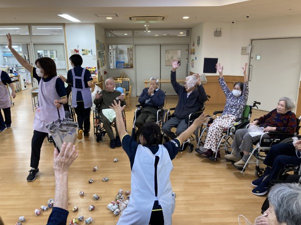 リモート大運動会も佳境に入り、1階での3種目「玉入れ」は白熱した戦いとなりました。