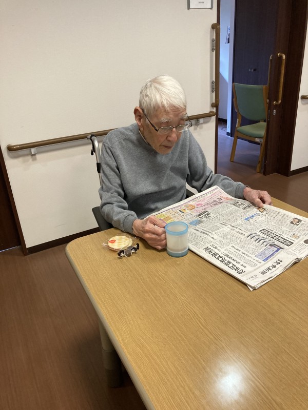 お茶菓子を食べながら、新聞を読まれたり、TVを見たり、他入居者様と会話を楽しまれたり、