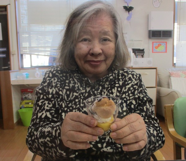 かぼちゃプリンにプチシュークリーム乗せて・・・♬