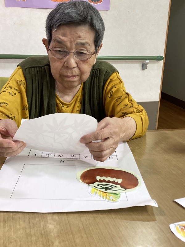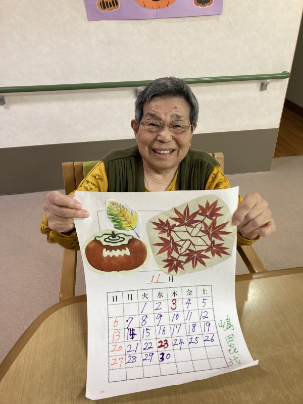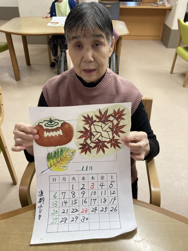 先日のレクリエーションで11月のカレンダー作りを行いました。