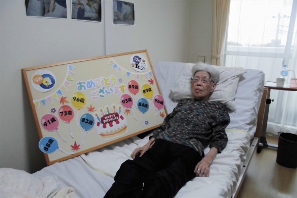 残念ながら誕生日会には参加できなかったお客様も、お部屋でバースデーソングを歌い写真撮影を行いました♪