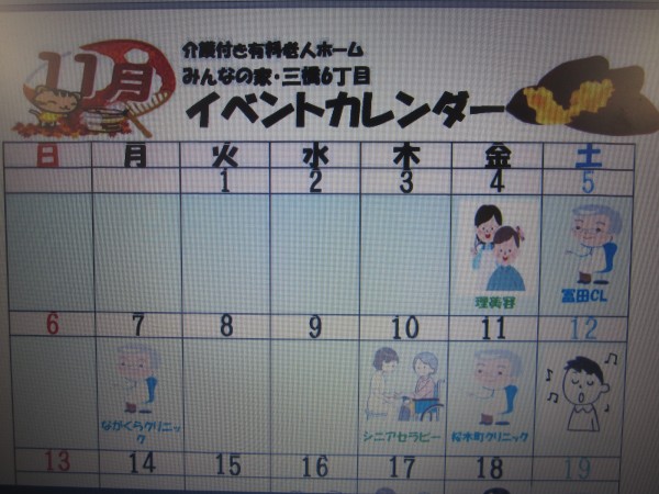 ★☆三橋6丁目にて11月のイベントカレンダーが完成2022年(^^♬ 『みんなの家・三橋6丁目・介護ブログ』☆★