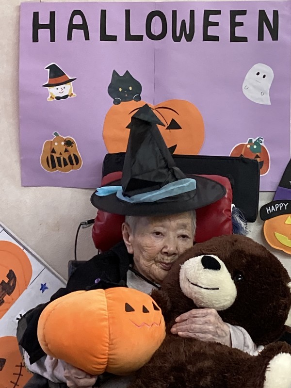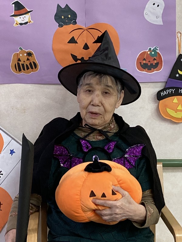 ハロウィンの旗を立ててパーティー感を出してみて、仮装していただきました。