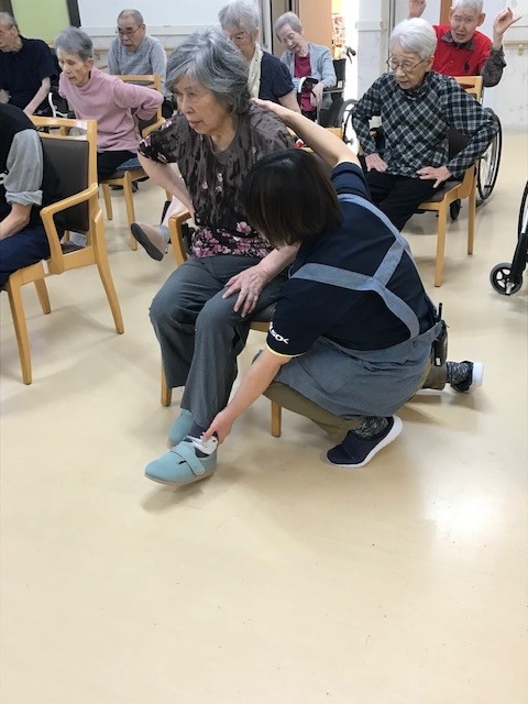 上の写真は高橋先生と職員の池田さんがリズムに合わせて体を動かせるようアプローチ!