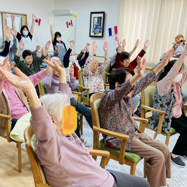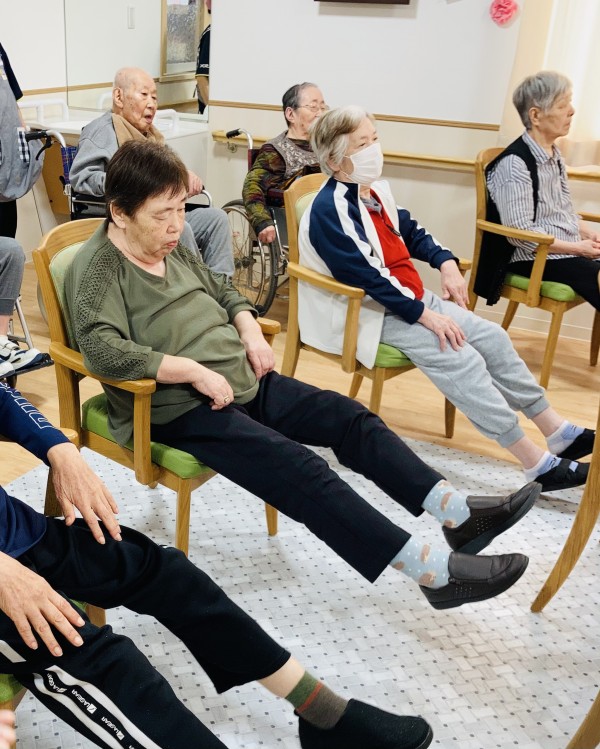 先生の掛け声に合わせ、体の動きを見ながら皆さん腕や足を上げたり下げたり、腰の運動も頑張ります❗️