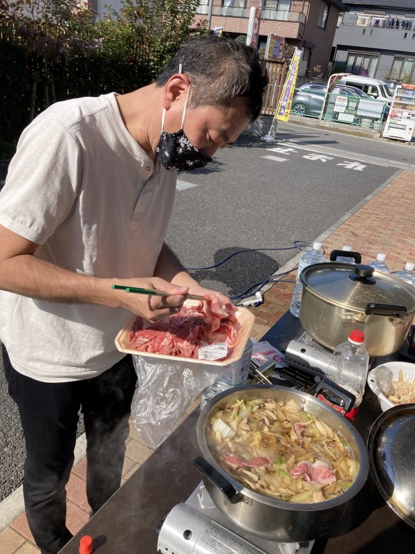 芋煮は、すこや家佐知川の荒木ホーム長が作りに来てくれました!