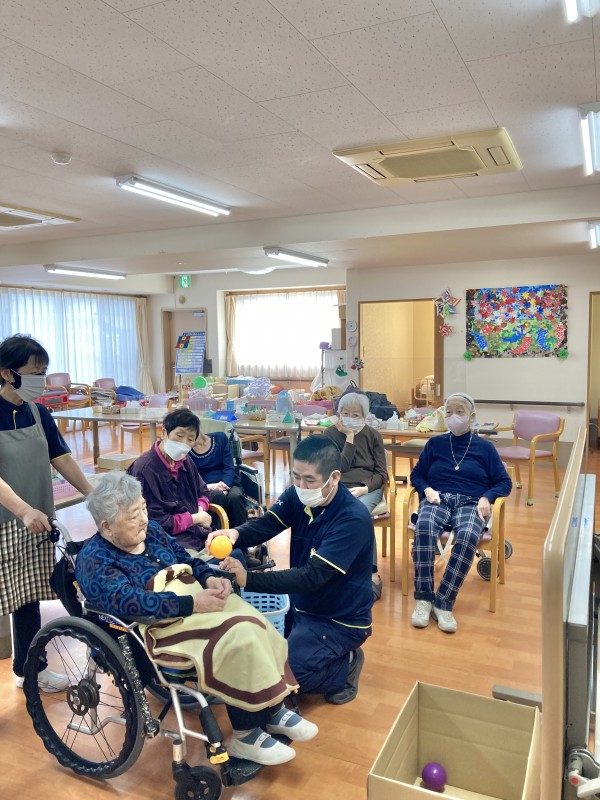 狙いを定めて、段ボールに入れようと一生懸命に投げていました!!